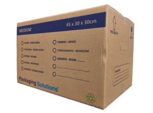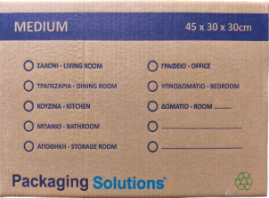 Χαρτοκιβώτιο Μετακόμισης με χειρολαβές 3 φύλλων, 45x30x30cm με εκτύπωση για εύκολη οργάνωση. Με εξωτερικό φύλλο πρωτογενούς kraft